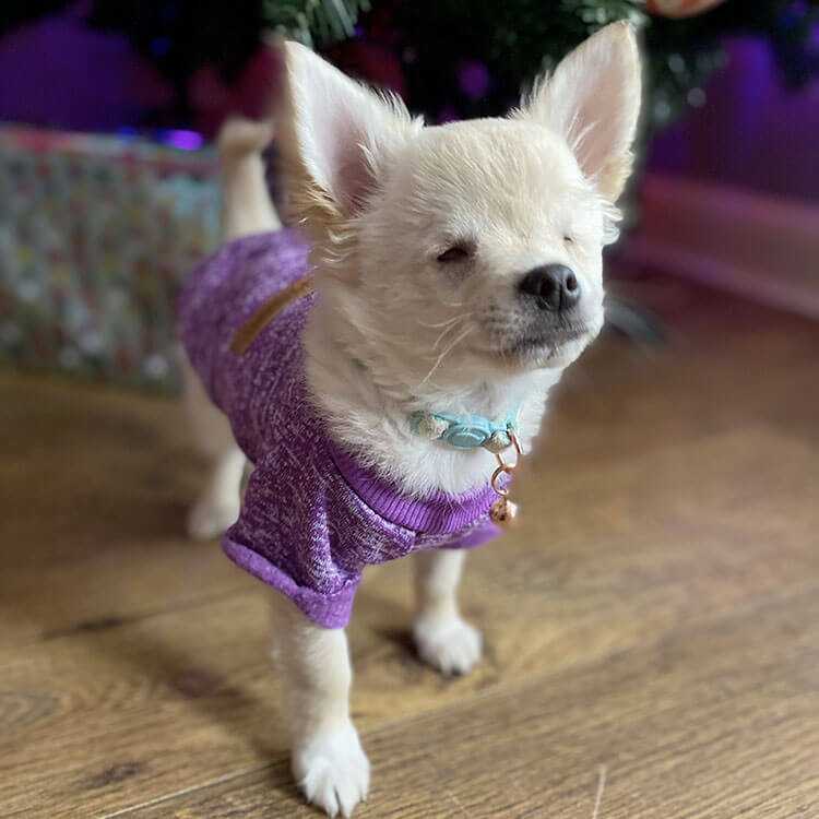 He doesn’t let his disability stop him in any way and likes to play with his toys and our other two dogs. He’s come on great in the five weeks we’ve had him, going from 0.9kg to nearly 2kg! He is looking forward to experiencing his first Christmas and getting to play with all the wrapping paper.